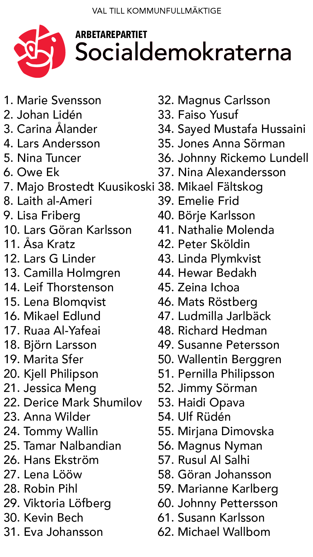 Eskilstuna står inför viktiga vägval. I en tid av oro väljer vi socialdemokrater att hålla fast vid framtidstro, sammanhållning och ansvar. Vår politik bygger på tre grundläggande värderingar: frihet, som växer ur trygghet, kunskap och arbete; jämlikhet, där livschanser inte ska avgöras av bakgrund eller ekonomi och solidaritet, eftersom vi bygger det starkaste samhället tillsammans.